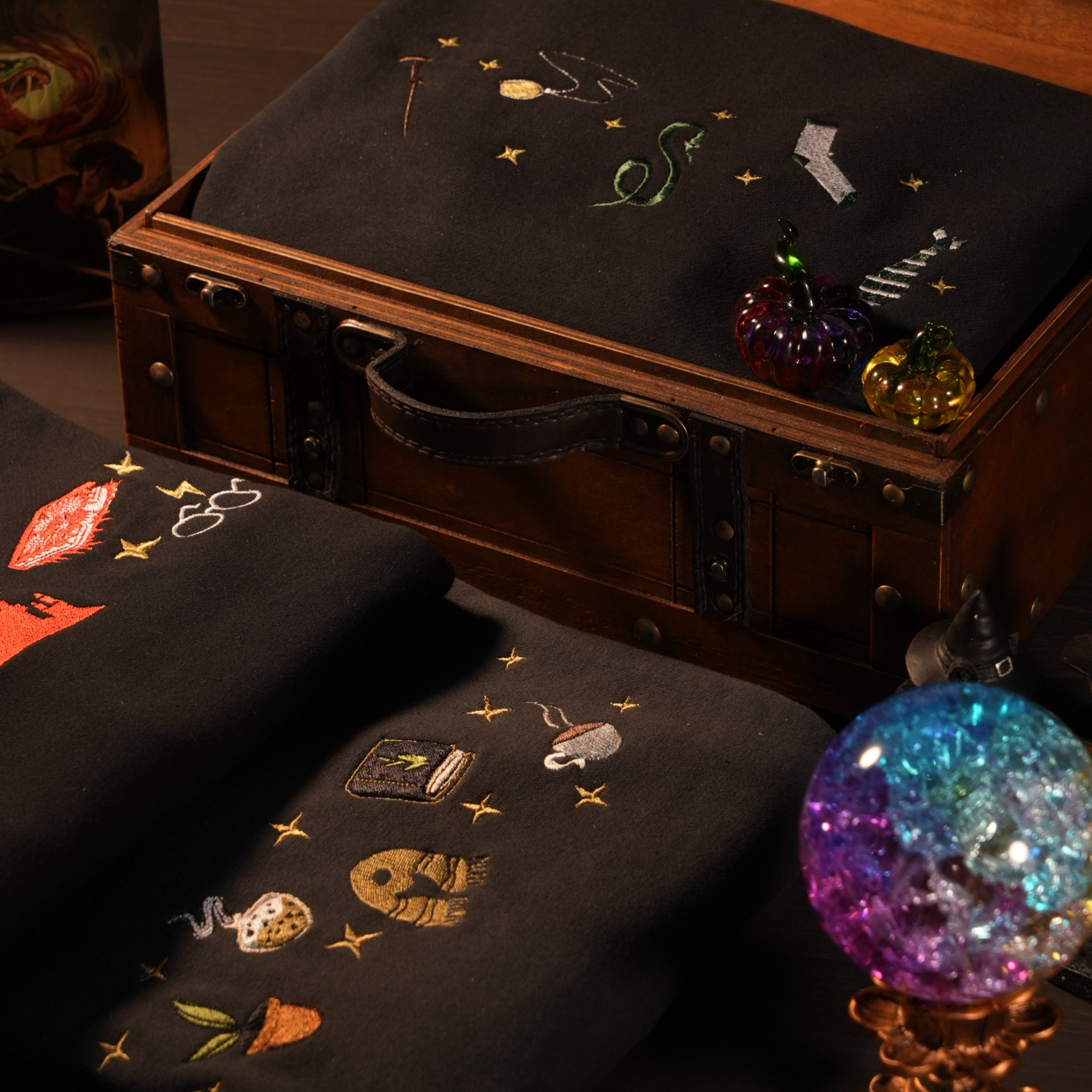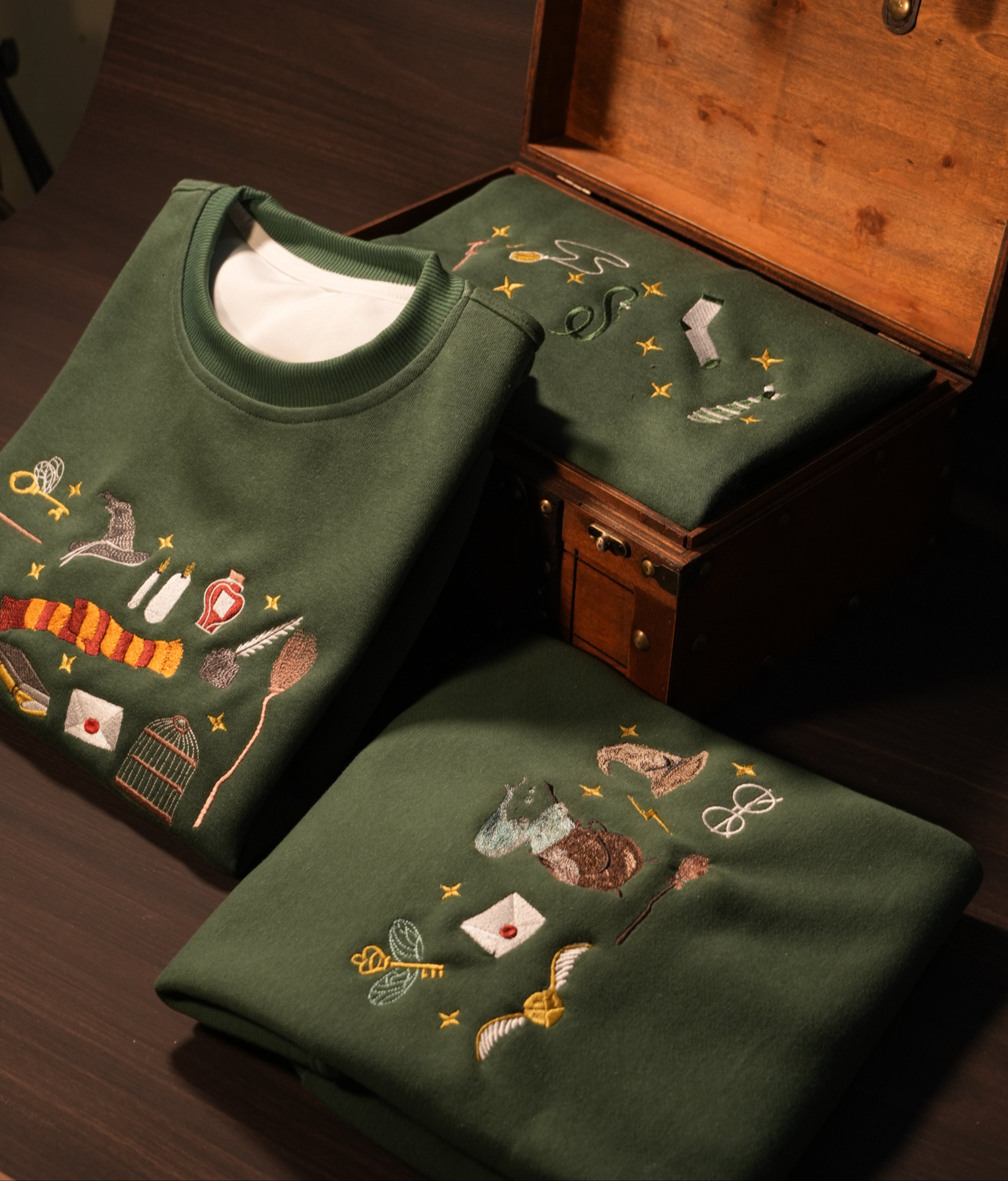 Màu sắc và biểu tượng huyền thoại trong từng hình thêu rực rỡ phép màu. Trực tiếp từ xưởng Muggle đến tay các bồ.