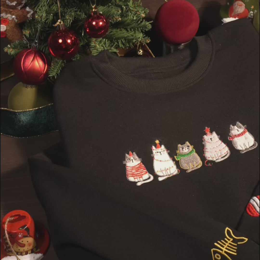 Áo sweater ngũ mèo Giáng Sinh, tặng hình thêu trên tay áo