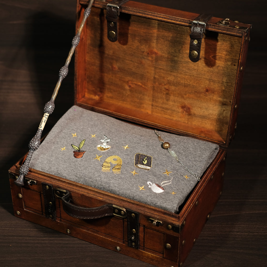 **Tên gọi (VN):** **Bộ Quà Tặng Phép Thuật – Badger House (Áo xám chuột + Đũa)**