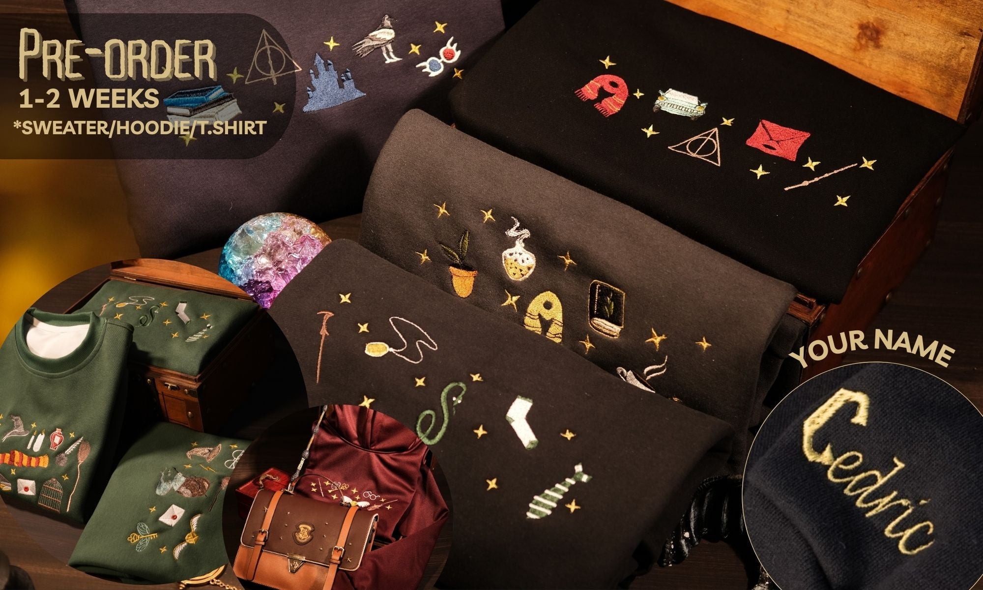 **Tên gọi (VN):** **Bộ Quà Tặng Phép Thuật – Cauldron & Hat (Áo xám chuột, Đũa, Túi bút lớn, 2 Sách phép, Túi xách nhỏ Sly)**