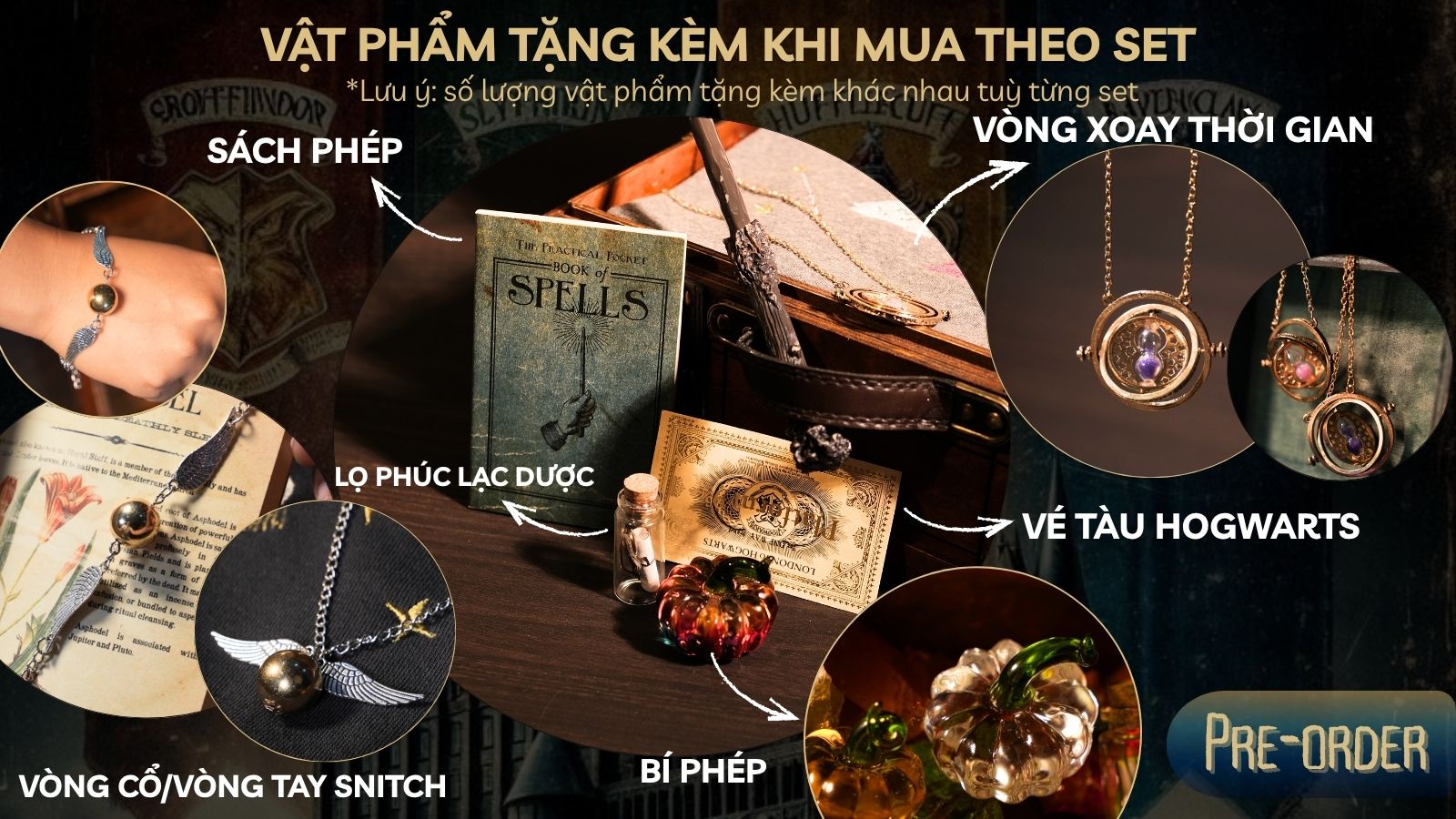 - **Quà tặng:** Lọ Lạc Dược Dược, Sỏi thanh lọc, Vòng tay Snitch, xoay thời gian, Vé tàu